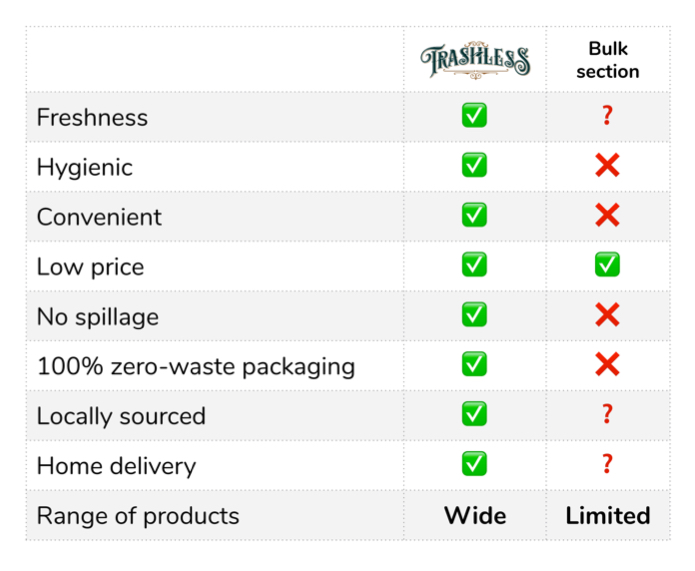 Trashless aims to reinvent the way fast-moving consumer goods are sold, delivered and consumed. We believe it is a better way - compared to everything else: